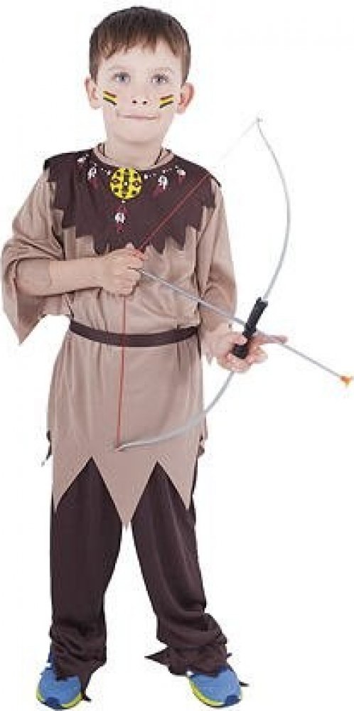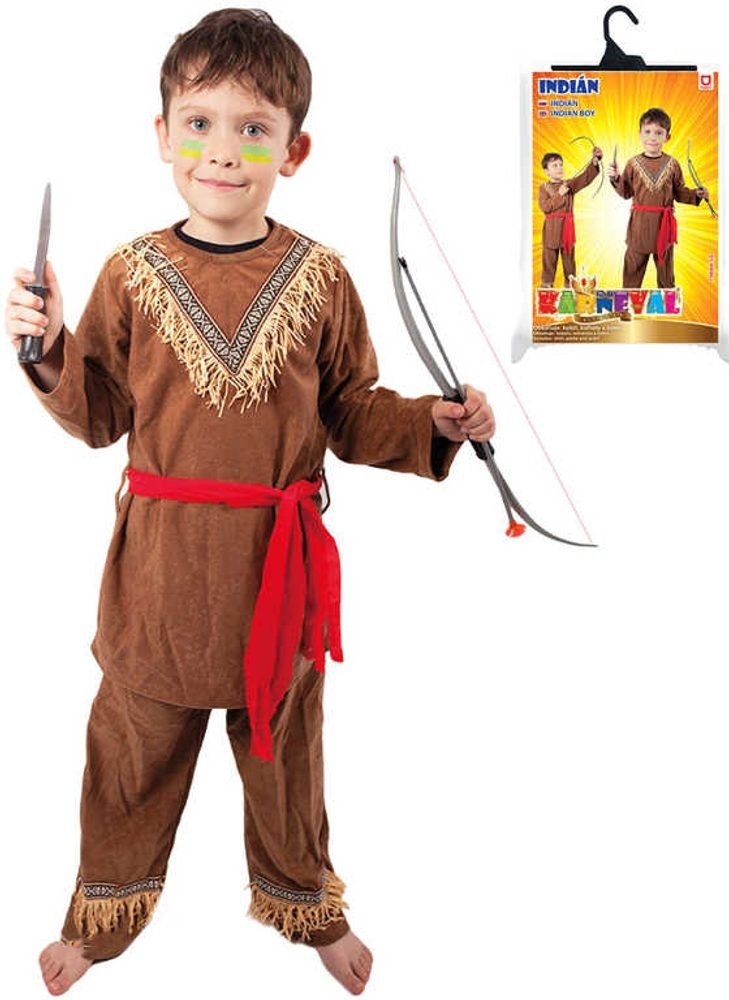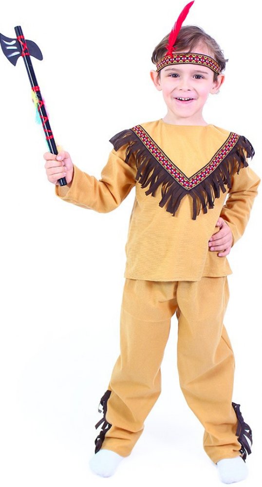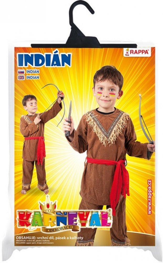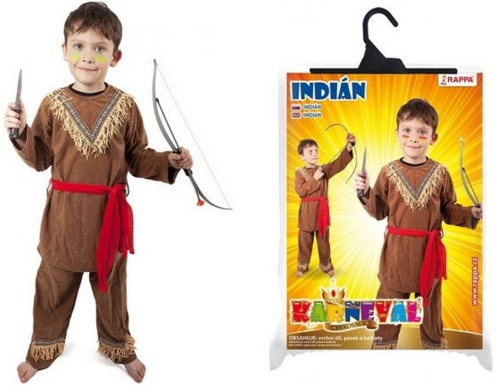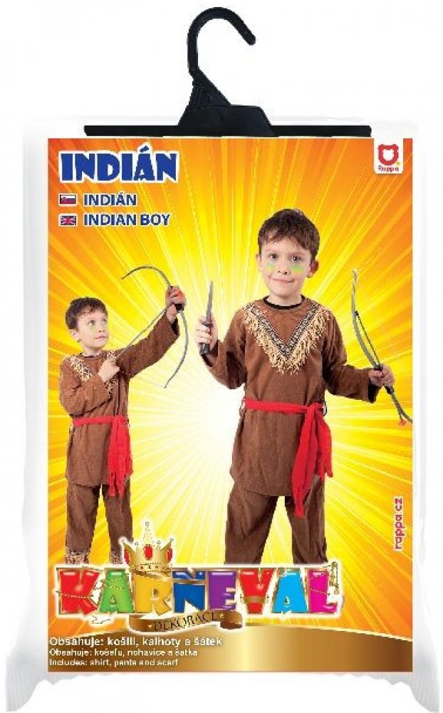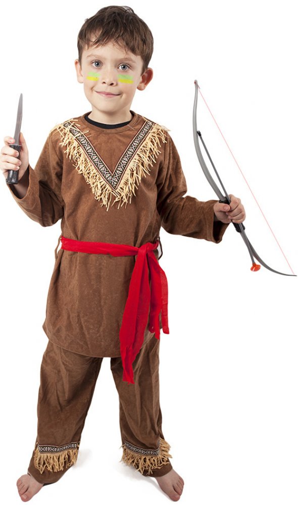 Stylový karnevalový kostým s motivem indiána! Kostým hnědé barvy je určen pro chlapečky ve věkovém rozmezí 6-8 let. Balení obsahuje horní díl s indiánským vzorem, kalhoty a červený šátek. Oba díly jsou zdobeny střapci. Staň se největším frajerem karnevalového večírku díky tomuto kostýmu a ohrom tak všechny své kamarády!