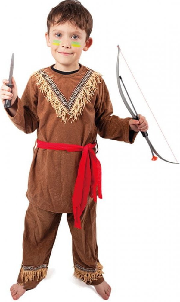 Kostým hnědé barvy ve velikosti S je určen pro chlapce ve věkovém rozmezí 4-6 let.