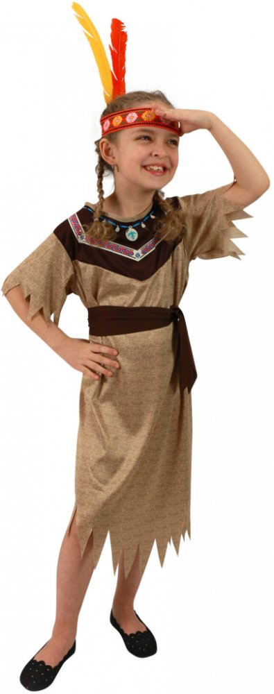 Stylový karnevalový kostým v motivu indiánské slečny! Kostým hnědé barvy je určen pro děvčata. Staň se největší hvězdou karnevalu!