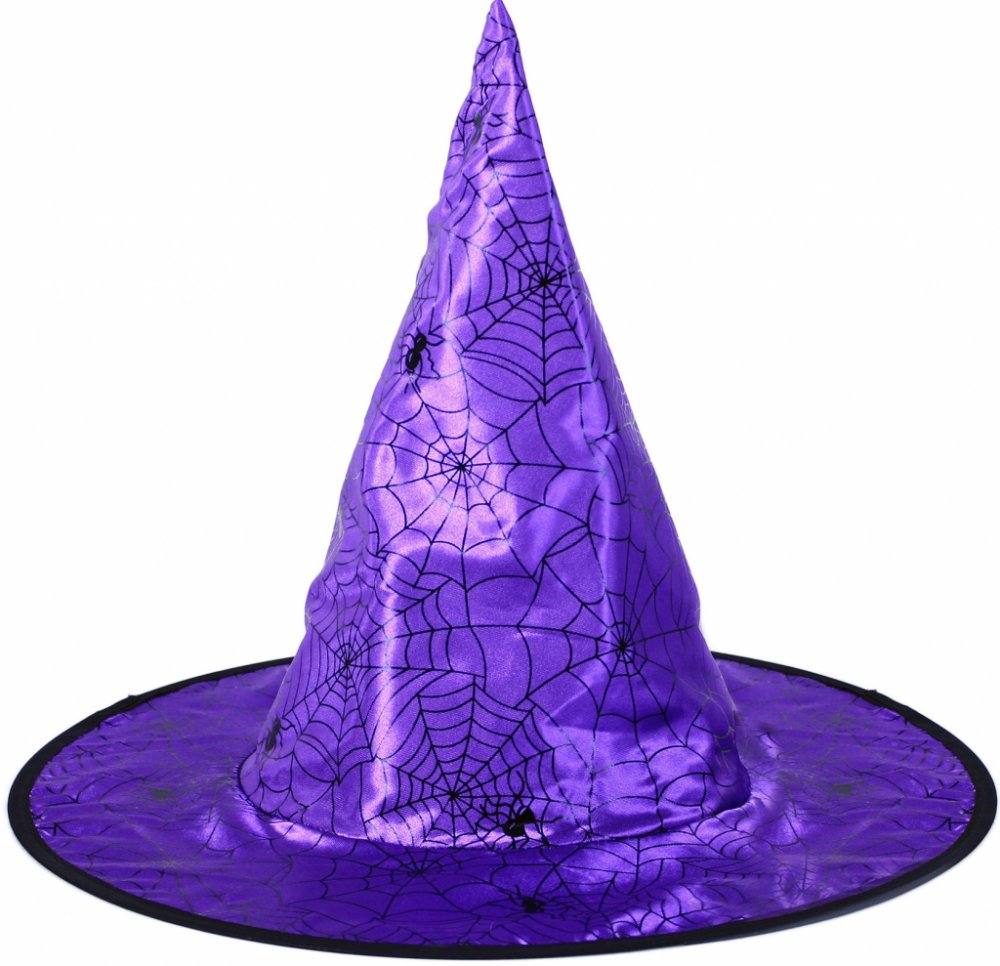 Tento čarodějnický klobouk je skvělým doplňkem na Halloween párty nebo karneval! Fialový klobouk je dekorován pavučinami a pavouky. Staň se hvězdou večírku díky tomuto klobouku!