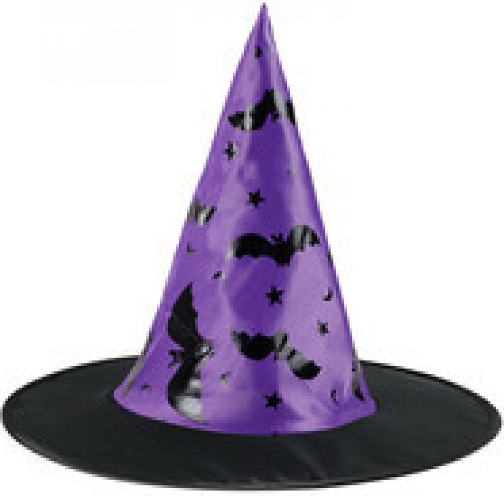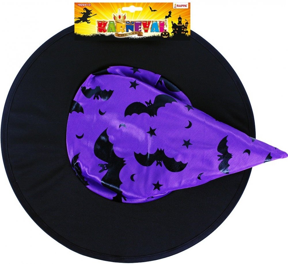 Úžasný čarodějnický klobouk s potiskem ve tvaru netopýrů. Ideální na halloweenský večírek nebo karneval!