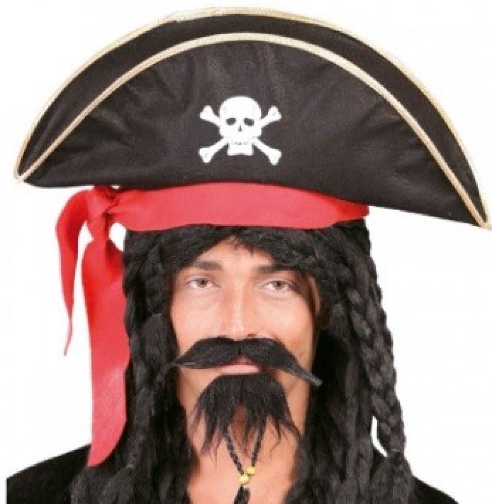 Parádní karnevalový klobouk ve stylu kapitána piráta je určen pro dospělé. Černý sametový klobouk je přizdoben potiskem pirátské lebky, červenou stuhou a zlatým lemováním. S touto senzační parukou si užijete spoustu zábavy. Staňte se hvězdou karnevalového večírku!