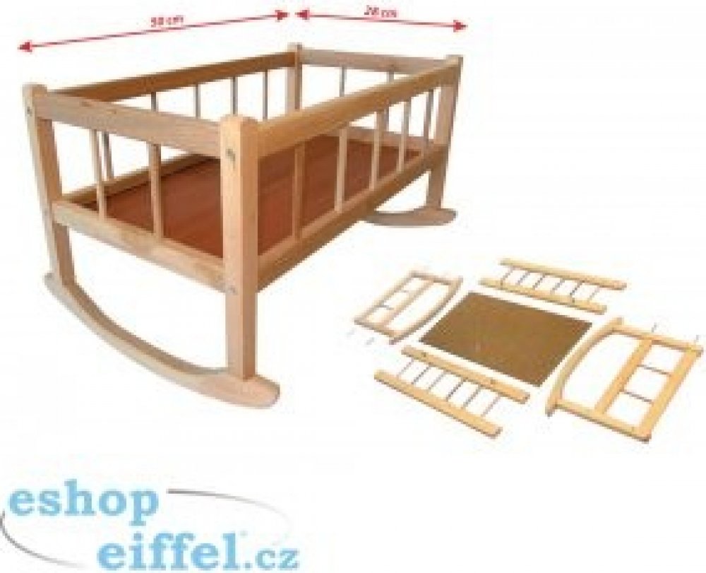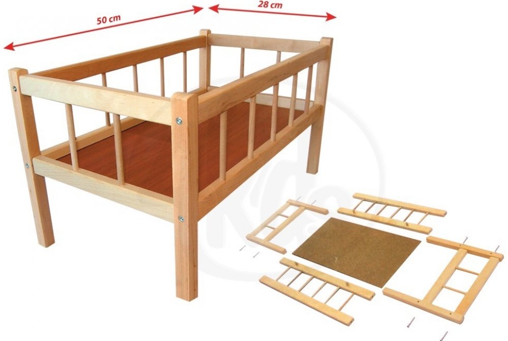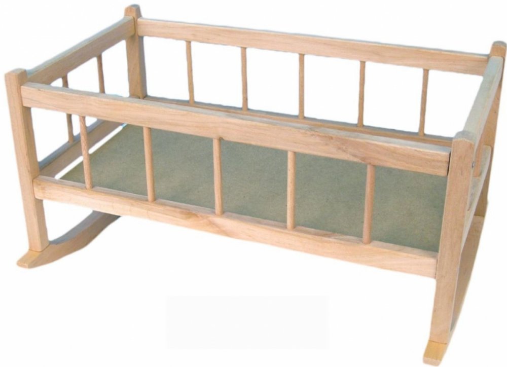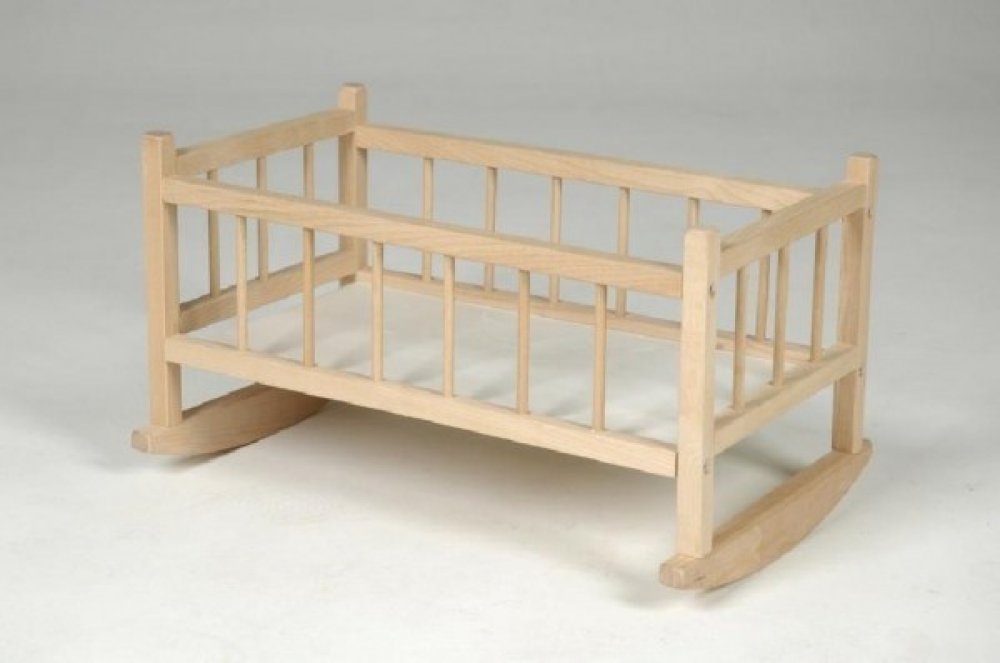 Krásná dřevěná kolébka pro panenky s dřevěným dnem. Lehké sestavení a dlouhé hraní.