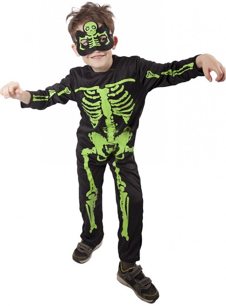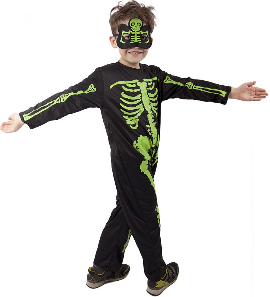 Dětský kostým Neonový kostlivec - Ideální karnevalový kostým pro holky i kluky! Vaše děti zazáří v tomto černo-zeleném karnevalovém oblečení. Perfektní doplněk nejen na Halloween, ale i na další tematické oslavy. Tento kostým vypadá skvěle v kombinaci s dalšími doplňky, jako je tričko, mikina, tepláky a legíny. Přidejte ještě batoh s kostlivcovým motivem a vykouzlete dokonalý outfit pro vaše malé dobrodruhy. Vyberte kvalitu a styl pro své děti na našem eshopu s dětským oblečením.