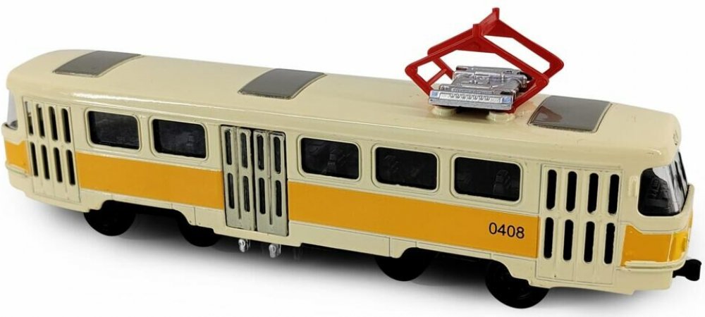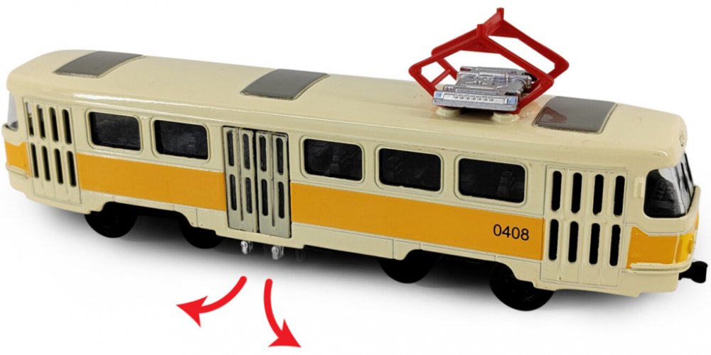 Rappa Kovová česká retro tramvaj žlutá 16cm otevírací dveře