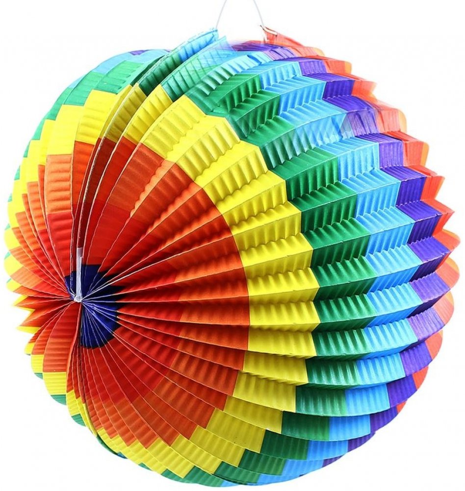 Lampion duhový 25 cm. Ideální pro lampionový průvod nebo svatého Martina!Lampion je vhodný pouze pro elektrický stožár.nehořlavý, průměr 25 cmPozor. Nevhodné pro děti do 3 let. Duhová lucerna Amscan Oslavujete v nejbližší době nějakou párty? Pak se vám bude hodit tato lucerna Amscan. Má všechny barvy duhy, které okamžitě rozzáří atmosféru. Specifikace: Duhová duhovka s duhovým světlem a barevným osvětlením: Materiál: papír/ocel Věk: od 4 let Duhový lampion 25 cm Krásný párty lampion. Parametry: Materiál: papír Rozměry: 17 x 1 x 21 cm Doporučený věk: 3+