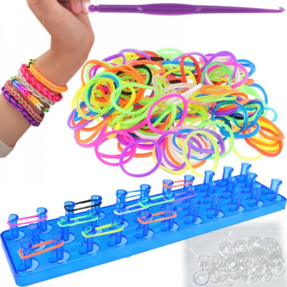 LOOM gumičky. Senzační náramky z gumiček zaručují zábavu, které neodoláš! Buď kreativní a vytvoř si jednoduchou metodou nepřeberné množství originálních náramků! Balení obsahuje 200 ks gumiček, stav 22 cm na pletení, háček k pletení a 12 ks spojovacích háčků.