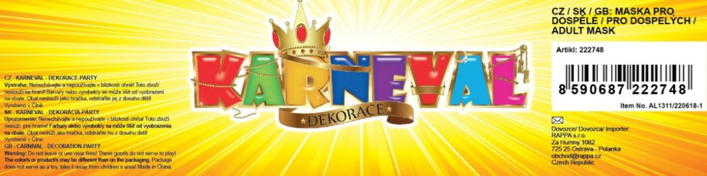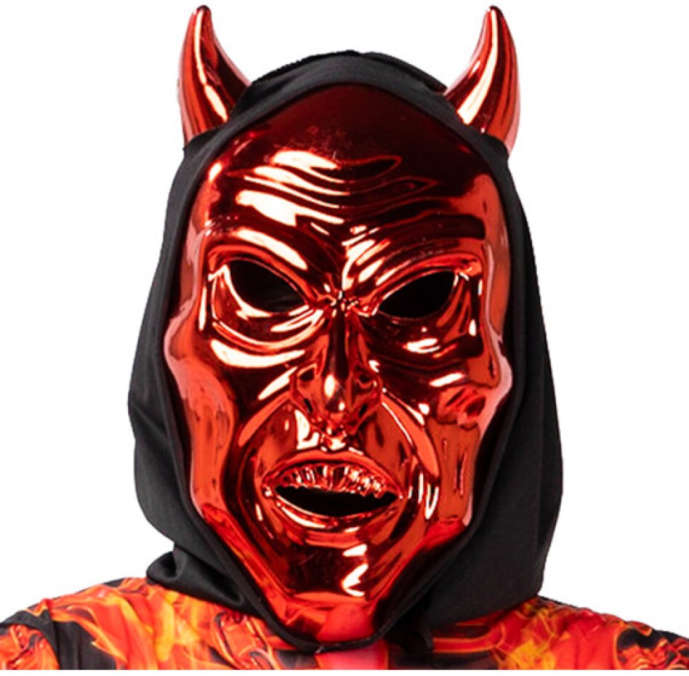 Maska s motivem děsivého čerta nesmí chybět ve tvé karnevalové sbírce! Maska je vhodná i na Halloween párty, vánoční besídku nebo karneval. Přední část masky je z plastu, ke které je připevněná textilní pokrývka hlavy. Baleno v sáčku.