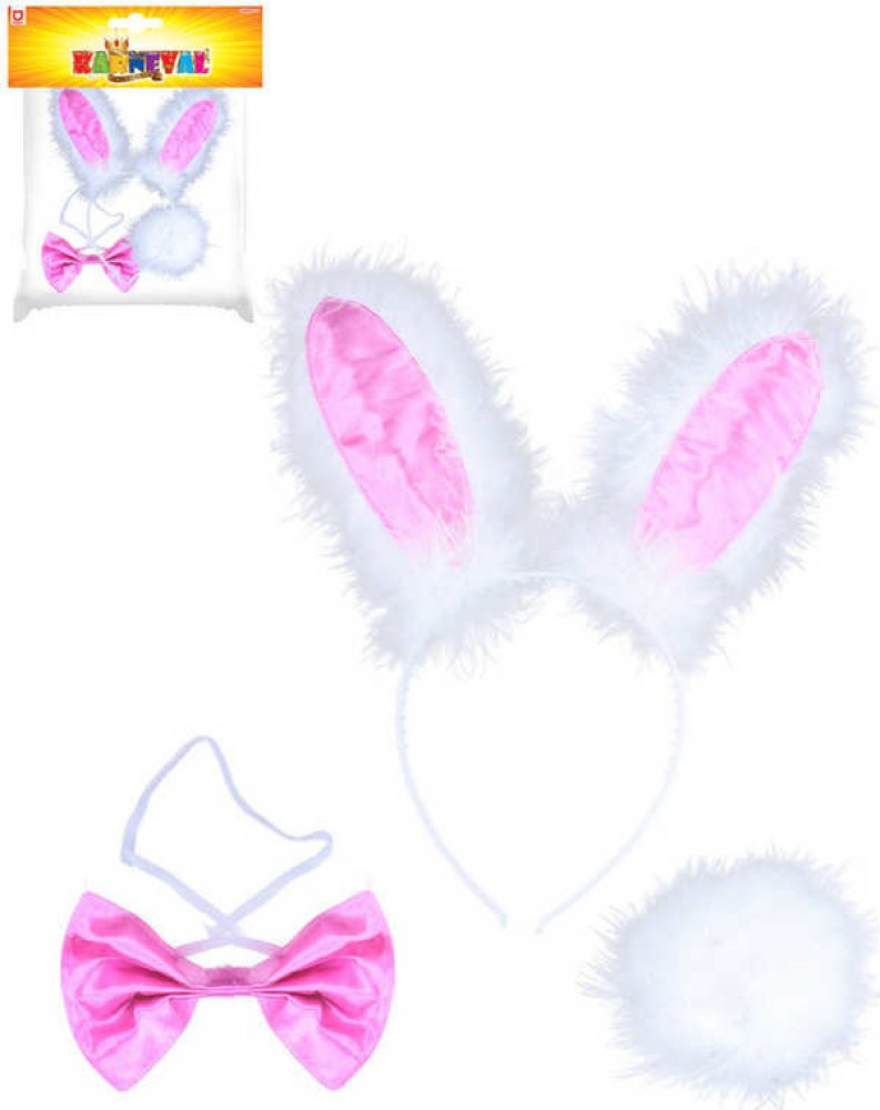 Exkluzivní karnevalová sada pro všechny zaječí holky! Set obsahuje zaječí uši na čelence, růžového motýlka na gumičku a připínací ocásek. Tyto super párty doplňky ti nesmí chybět!