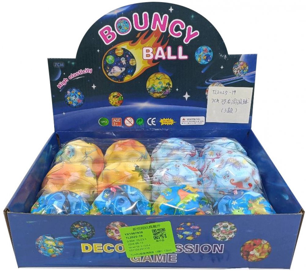 \nMěkký gumový míček s potiskem oblíbených dinosaurů o průměru 7 cm je ideální pro děti i dospělé, kteří si chtějí užít spoustu zábavy. Díky pružnému materiálu skáče do výšky a poskytuje nekonečnou zá