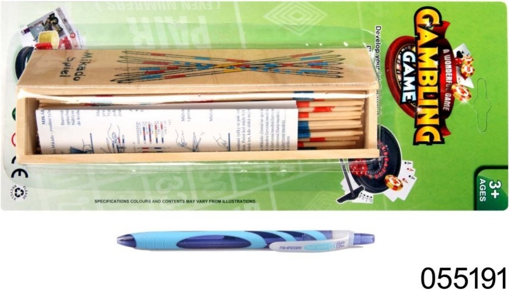 Hra mikádo, jež přežívá desetiletí. Přináší napětí a zábavu a zároveň je lehce sbalitelná pro přenos. Dřevěné tyčinky v dřevěné krabičce balené na blistru. Věk: od 3 let Hra Mikado, která vydrží desítky let. Přináší vzrušení a zábavu a zároveň se snadno balí pro přepravu. Dřevěné tyčinky zabalené v dřevěné krabičce v blistru.