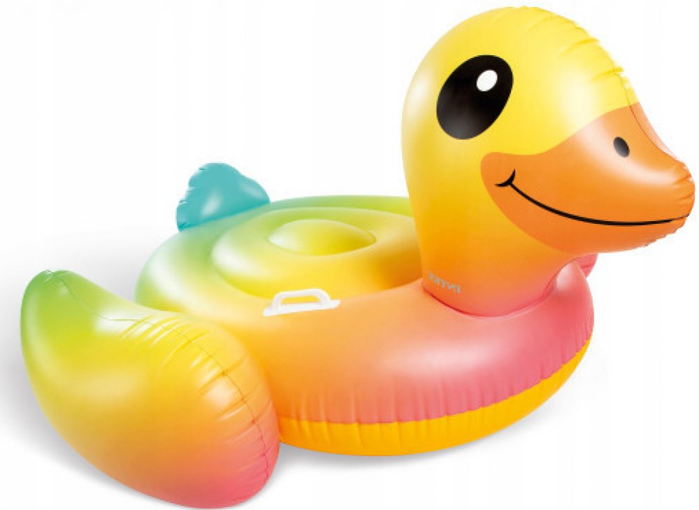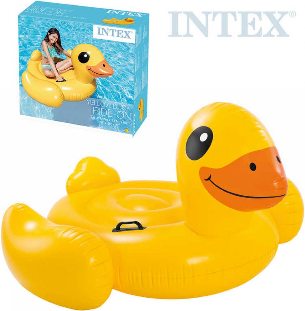 INTEX 57556 - Žlutá malá nafukovací kačenka - plavidlo pro děti na vodu, kachnička se dvěma úchyty. Matrace je stabilní, má dvě pevná držadla a dvě vzduchové komory. Neobsahuje ftaláty a latex. Kačer.