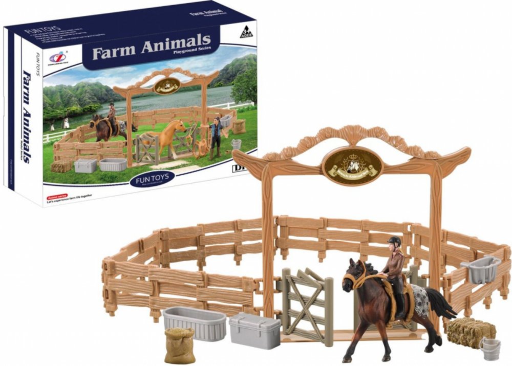 Ohrada pro koně určená nejen všem milovníkům těchto zvířat. Součásti balení jsou kromě ohrady také kůň, figurka chovatelky koní a příslušenství potřebné k chovu koní. Tato hračka je součástí kolekce Moje malá farma.