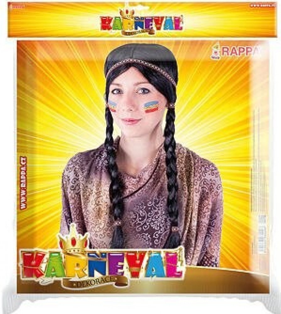 Úchvatná karnevalová dámská paruka ve stylu indiánské Ribany je určena pro dospělé. Paruka je přizdobena stylovou čelenkou a gumičkami. S touto senzační parukou si užijete spoustu zábavy. Staňte se hvězdou karnevalového večírku! Barva stuhy se může lišit.