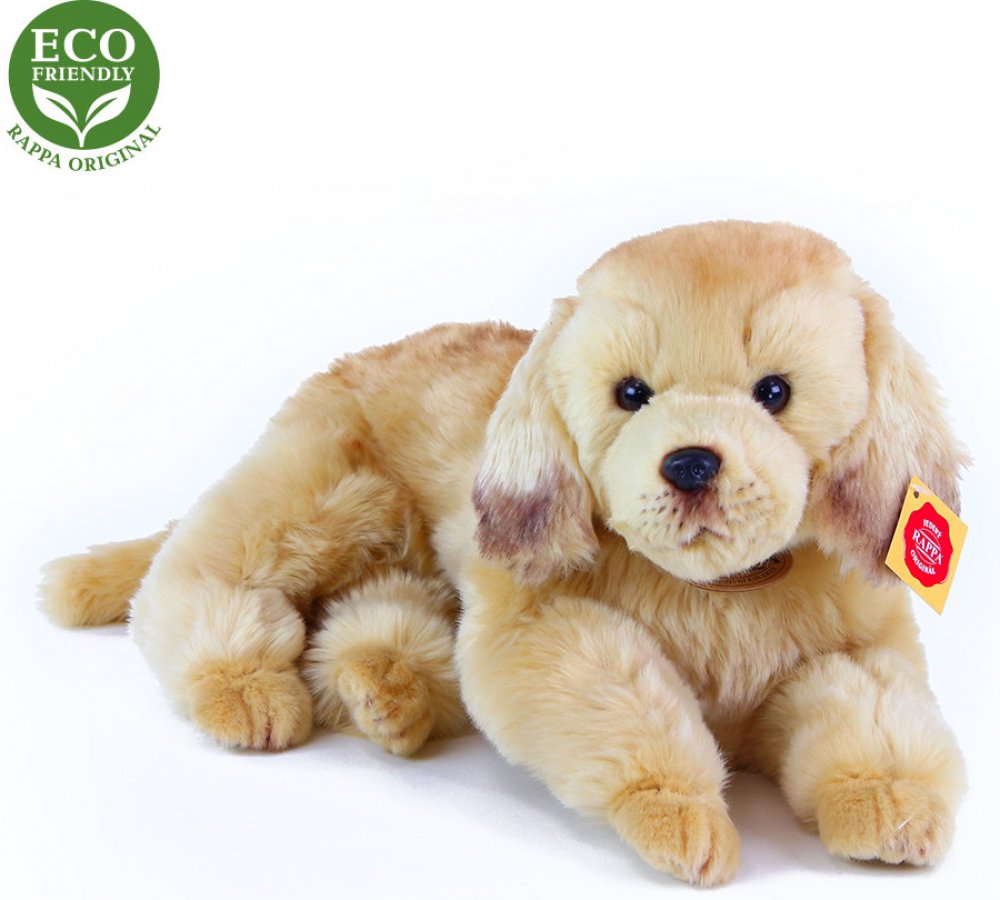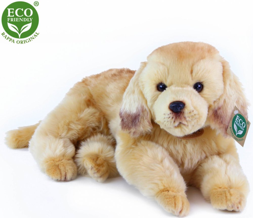 Rappa Plyšový pes zlatý retrívr ležící 32 cm ECO-FRIENDLY Rozkošný plyšový pes retrívr nesmí chybět v žádném dětském pokojíčku! Tento ležící pes je vyroben z exkluzivní, velmi kvalitní plyše a jeho délka je cca 32 cm. Tento senzační plyšový kousek je ideální i jako dárek! Co to vlastně ECO-FRIENDLY znamená? Výplň plyšové hračky je vyrobena z recyklovaných PET lahví. Tento materiál je zcela bezpečný, na omak nerozeznatelný od standartní výplně a plně atestovaný pro bezpečnost i těch nejmenších. Rozhodli jsme se jít zelenou cestou co nejméně zatěžující životní prostředí- cestou ECO-FRIENDLY.