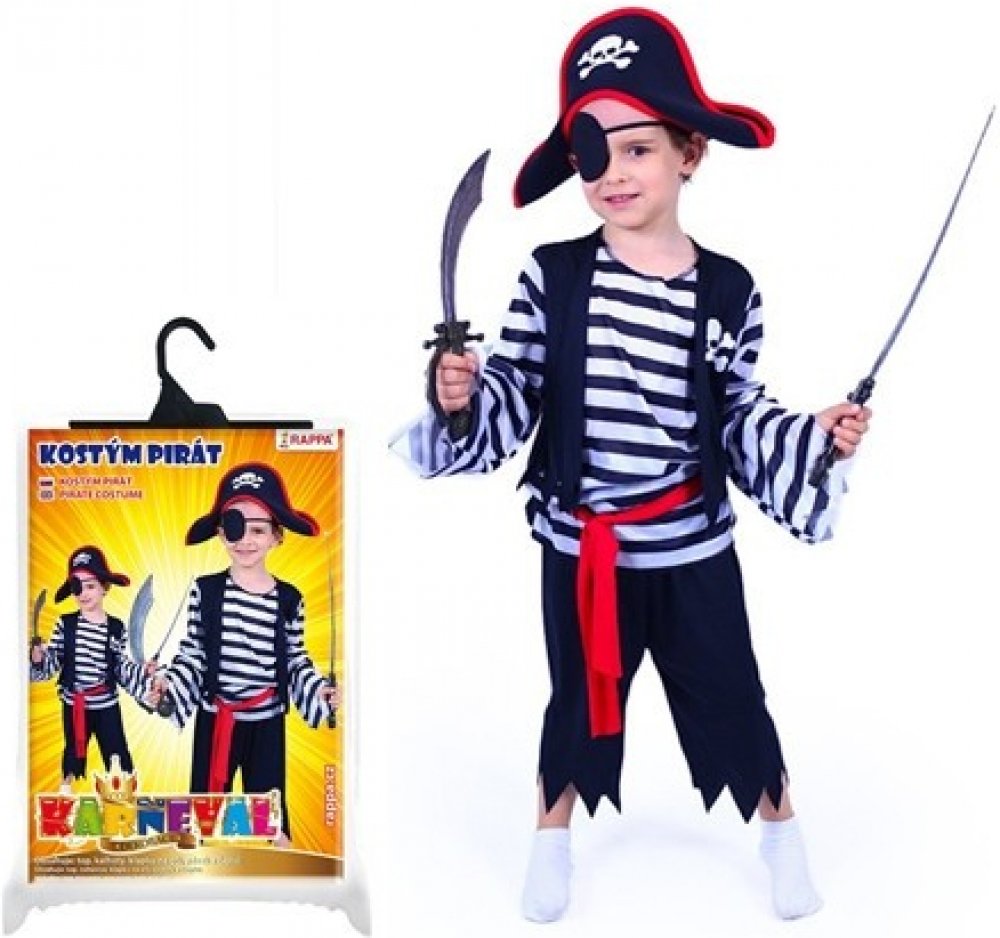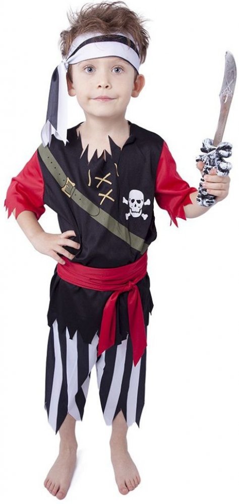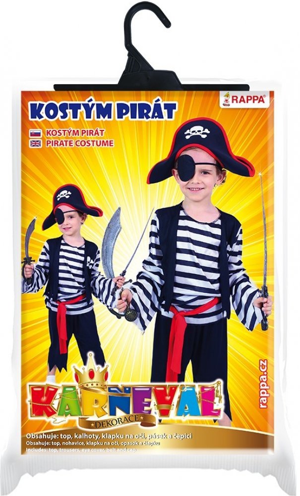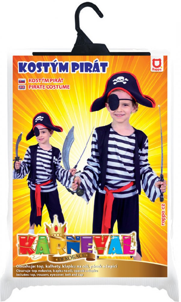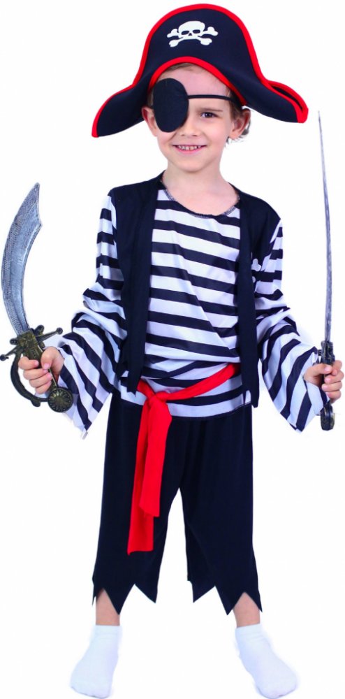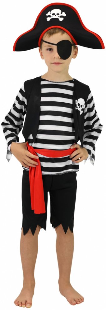 Obsah balení: horní díl, kalhoty, pásek, klapka na oko, stylová pirátská čepice