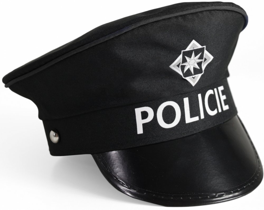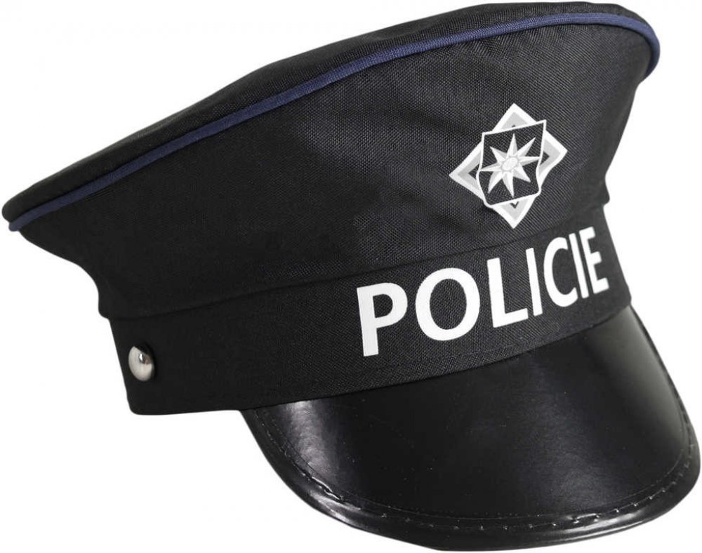Čepice policie se kterou vyladíte svůj policejní kostým k dokonalosti! Stylová černá policejní čepice je zdobena v přední části potiskem odznaku a nápisem. Vhodné jako doplněk ke karnevalovému kostýmu Policajt (policista). Určeno pro starší děti nebo dospělé.