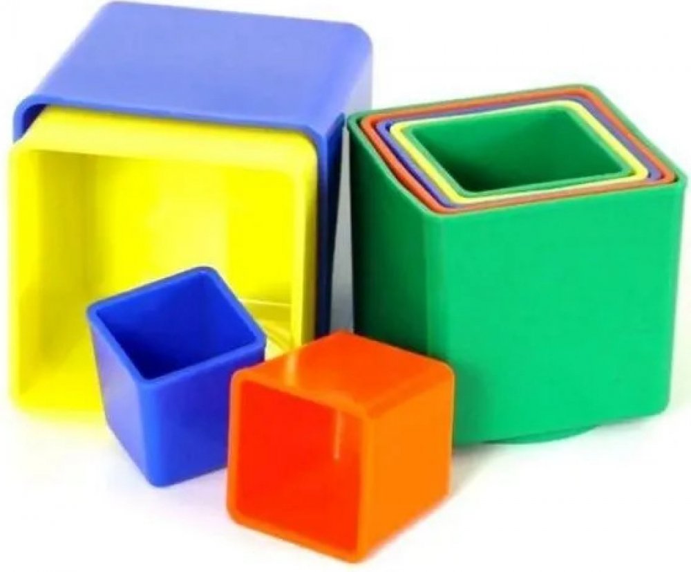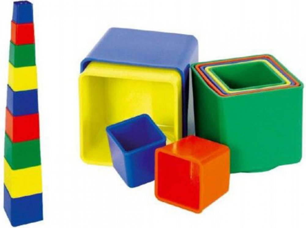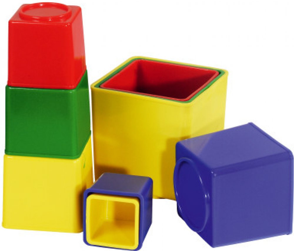 Kubus obsahuje devět kalíšků různých barev, které do sebe zapadají. Skládanku si děti mohou vzít i na písek nebo do vody.