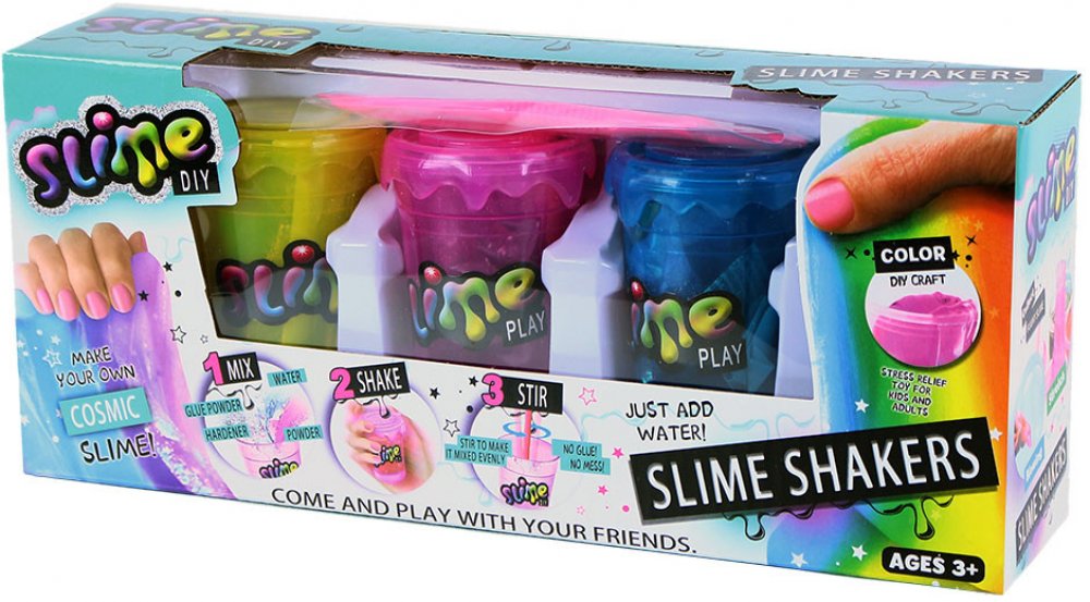 Vyrob si svůj kosmický sliz pomocí této senzační sady! Každé balení obsahuje tři barevné kelímky, které mohou posloužit jako šejkr.