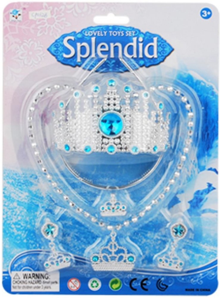 Krásná sada pro zimní princezny. Set obsahuje půvabnou korunku, náušnice a náhrdelník. Všechny prvky této sady jsou perfektním doplňkem ke kostýmu.