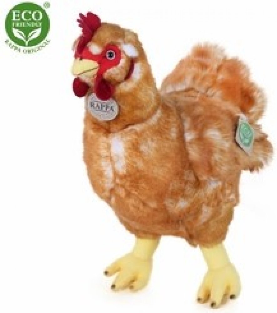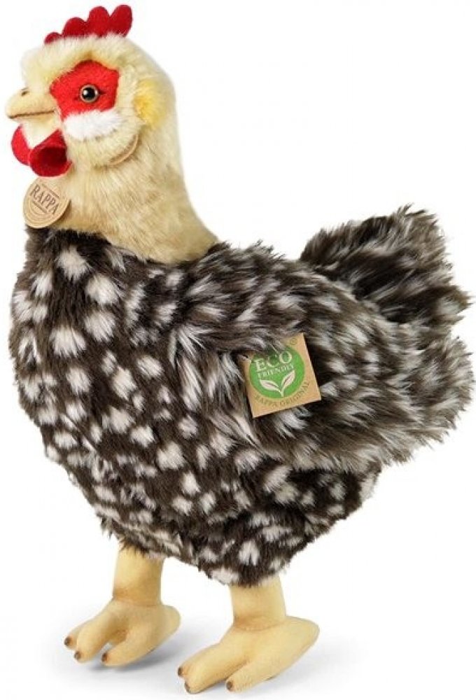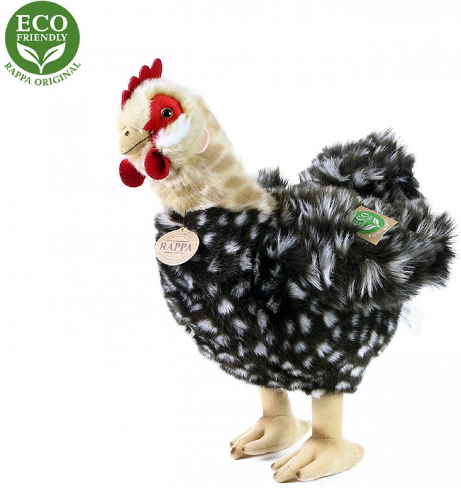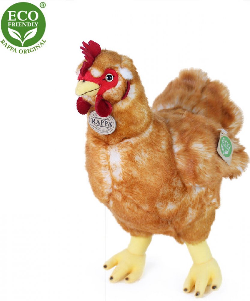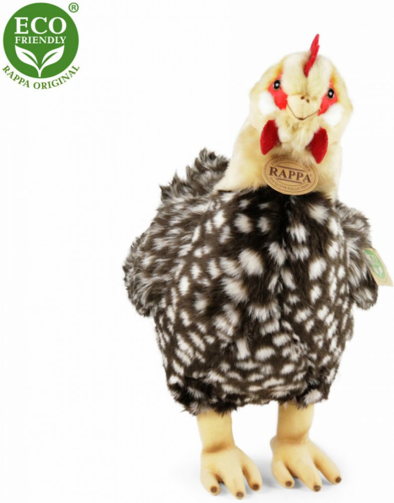 Plyšová slepice ve velikosti 33 cm je vyrobena z vysoce kvalitní plyše a je tak součástí exkluzivní kolekce plyšových hraček RAPPA. Součástí je látkové vajíčko, které je přichyceno ke slepičce pomocí šňůrky. Co to vlastně ECO-FRIENDLY znamená? Výplň plyšové hračky je vyrobena z recyklovaných PET lahví. Tento materiál je zcela bezpečný, na omak nerozeznatelný od standartní výplně a plně atestovaný pro bezpečnost i těch nejmenších. Rozhodli jsme se jít zelenou cestou co nejméně zatěžující životní prostředí- cestou ECO-FRIENDLY.