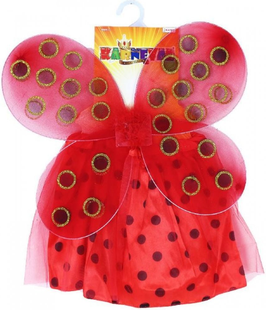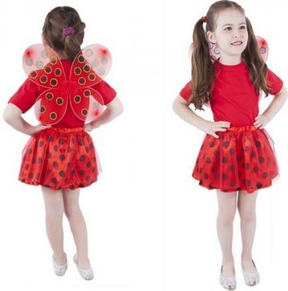 Roztomilá souprava pro všechny malé parádnice! Kostýmek červené barvy je určen pro holčičky ve věkovém rozmezí 3-10 let (104-150 cm). Balení obsahuje nadýchanou sukničku zdobenou puntíky a perfektně sladěná křídla.