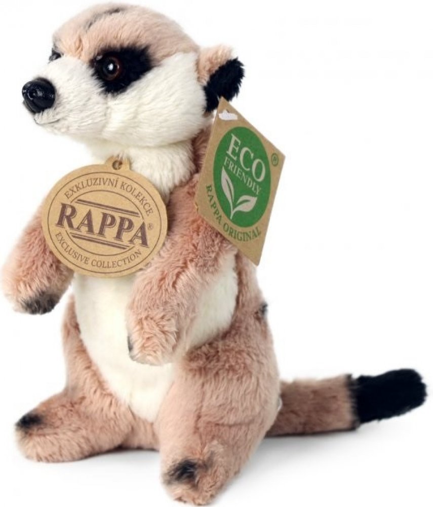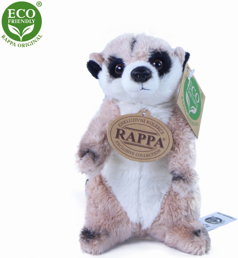 Plyšová surikata měří 14 cm a díky těm nejkvalitnějším materiálům se řadí do Exkluzivní kolekce plyšových hraček značky Rappa. Díky ručnímu zpracování každého kusu navíc vypadá jako živá. Proč označení ECO-FRIENDLY? Rappa si je vědoma všech dopadů na životního prostředí, zaměřuje se na udržitelnost a omezení používání plastů na minimum. Proto je výplň hraček vyrobena z recyklovaných materiálů, zejména PET lahví. Ta je však zcela nezávadná a vhodná i pro děti od narození. FUN FACT: Věděli jste, že v každé skupině surikat je vždy někdo na stráži – stojí vzpřímeně a dává pozor na predátory?