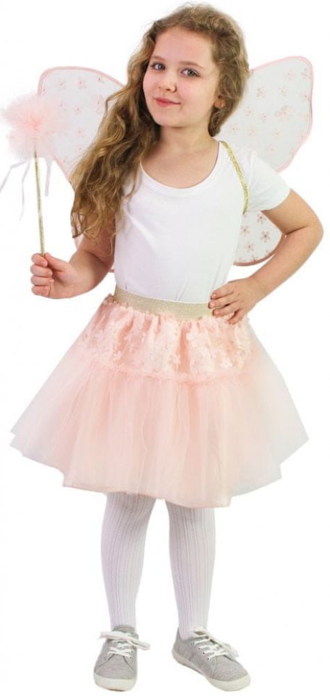 Krásná vílí sada pro malé holčičky! Sada obsahuje růžovou tylovou TUTU sukýnku se saténovou spodničkou. Sukně je zdobena drobnými květinkami a zlatou gumou v pase, k tomu perfektně sladěná křídla a hůlka ve stejném motivu. Sukně je dlouhá cca 35 cm a je vhodná pro obvod pasu 50-60 cm. Určeno pro holčičky ve věkovém rozmezí 3-10 let (104-146 cm). Nejen letos je potřeba myslet EKO-nomicky i EKO-logicky! EKO-balení je vhodné zejména pro e-shopy kde zákazník nakupuje dle fotografie a není třeba velkého balení s věšákem. EKO-logicky – na balení bylo použito méně plastu a dalších materiálů. Jedná se o malý transparentní obal s fotografií. EKO-nomicky –EKO-obal zabere jen polovinu místa – šetřete skladová místa s námi!
