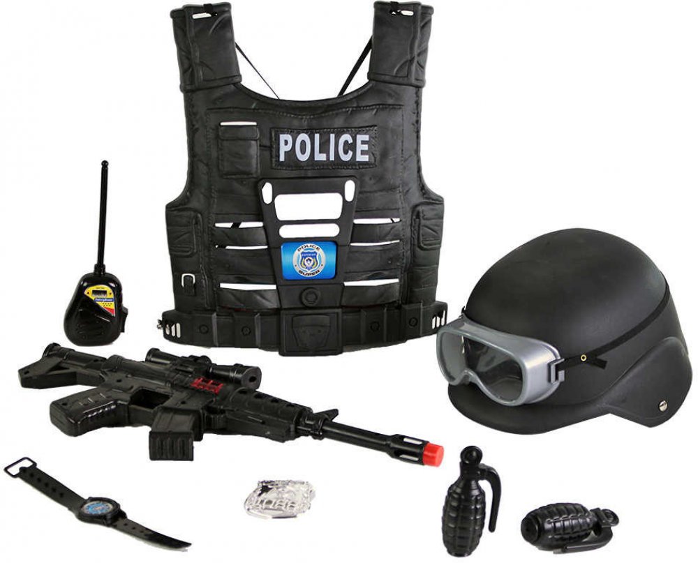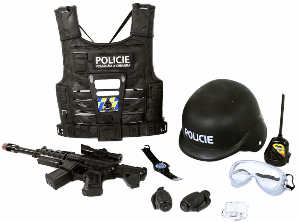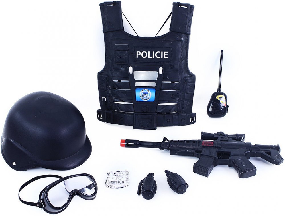 Profesionální sada pro opravdové policisty! Tento profi set obsahuje samopal, ochrannou vestu, granát, vysílačku, hodinky, odznak, brýle a helmu. Vše je vyrobeno z plastu. Zažij opravdovou zásahovou akci! Profesionální sada pro opravdové policisty! Tento profi set obsahuje samopal, ochrannou vestu, granát, vysílačku, hodinky, odznak, brýle a helmu. Vše je vyrobeno z plastu. Zažij opravdovou zásaho...