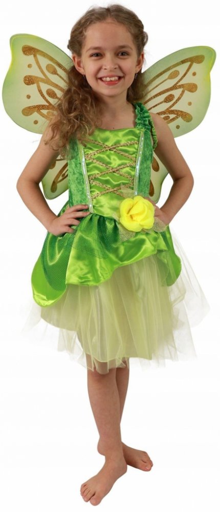 Oslnivý karnevalový kostým s motivem víly Zelenky! Kostým v zelené barvě se žlutou květinou a velikosti M je určen pro holčičky ve věkovém rozmezí 6-8 let (116-128 cm). Balení obsahuje křídla a šaty. Staň se hvězdou karnevalového večírku díky tomuto kostýmu! Nejen letos je potřeba myslet EKO-nomicky i EKO-logicky! EKO-balení je vhodné zejména pro e-shopy, kde zákazník nakupuje podle fotografie a není třeba velkého balení s věšákem. EKO-logicky - na balení bylo použito méně plastu a dalších materiálů. Jedná se o malý transparentní obal s fotografií.