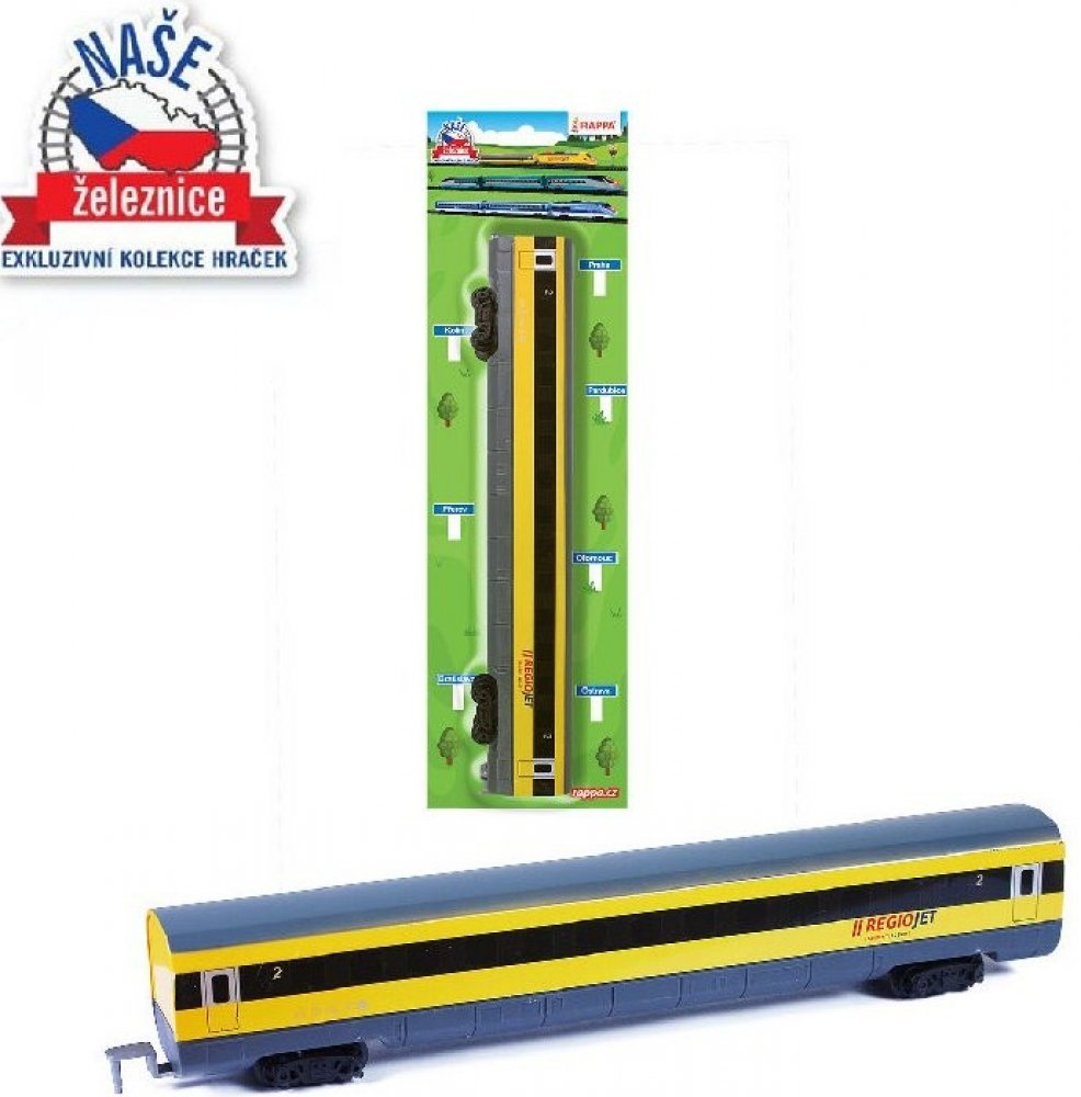 Lokomotiva regionální společnosti RegioJet, by neměla chybět v pokojíčku žádnému fandovi vláčků. Tento úžasný kovový model lokomotivy je ideální jako dárek nebo jako sběratelský kousek. Při koupi více kusů je lze jednoduše zapojit za sebou. Lokomotiva jezdí na volný chod. Konkrétní barvu nebo druh výrobku není možné z technických důvodů zvolit, objednávce bude přidělena náhodná varianta dle skladových možností. Technické údaje: rozměry balení: 5 x 10 x 5 cm (v x š x h) rozměr výrobku: 9 cm materiál: kov/plast Obsah balení: 1 x lokomotiva/vlak Pokud není uvedeno jinak, cena se vztahuje na 1 ks produktu.