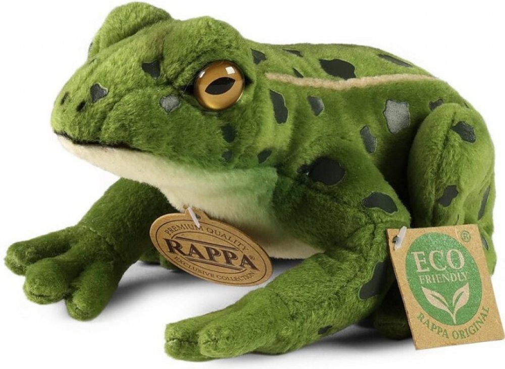 Plyšová žába o velikosti 19 cm je ručně ušitá z vysoce kvalitního jemného plyše, a díky tomu vypadá jako živá. Tento plyšový kousek je ideálním dárkem pro všechny milovníky heboučkých plyšáků. Je součástí exkluzivní kolekce plyšových hraček značky RAPPA. Hlavní vlastnosti: realistické zvířátkoruční zpracovánívysoce kvalitní plyšECO-FRIENDLY výplň Co to vlastně ECO‑FRIENDLY znamená? Výplň plyšové hračky je vyrobena z recyklovaných PET lahví. Tento materiál je zcela bezpečný, na omak nerozeznatelný od standardní výplně a plně atestovaný pro bezpečnost i těch nejmenších. Rozhodli jsme se jít zelenou cestou co nejméně zatěžující životní prostředí – cestou ECO‑FRIENDLY.