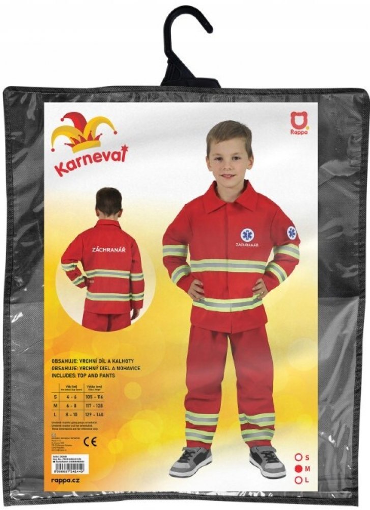 Kdo by si jako malý nehrál na záchranáře? S tímto kostýmem se během chvilky stane záchranářem každý. Dětský karnevalový kostým s českým potiskem doplněný reflexními prvky je perfektní volbou pro všechny malé hrdiny. Děti si mohou s radostí a nadšením hrát na záchranáře a pomáhat potřebným ve své fantazii. Sada obsahuje blůzu s nápisem ZÁCHRANÁŘ a kalhoty.