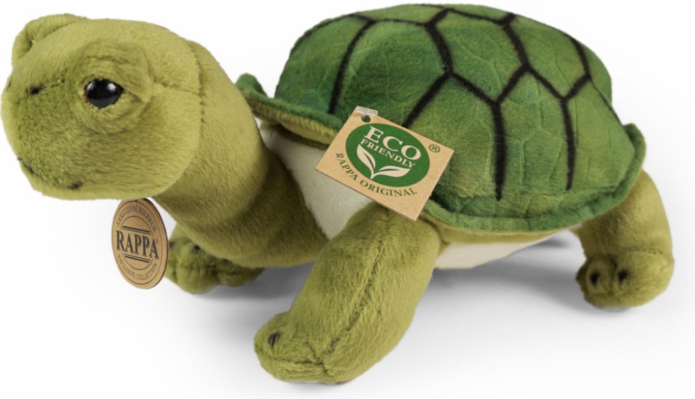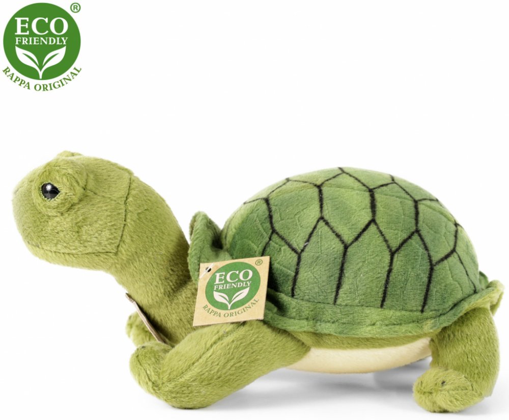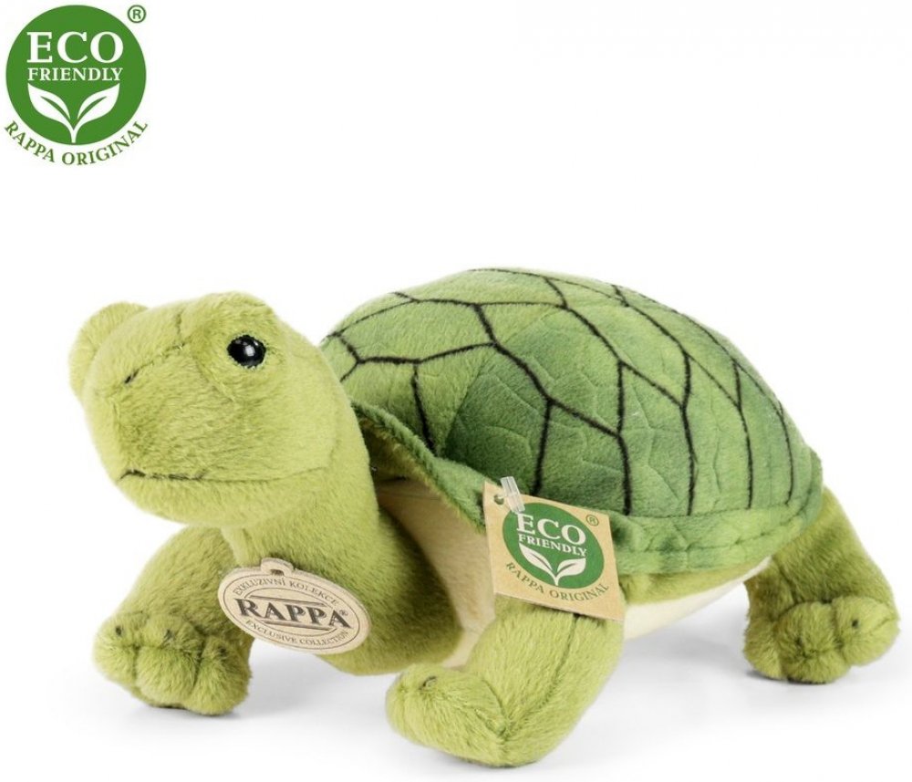 RAPPA - Plyšová želva Agáta zelená 25 cm ECO-FRIENDLY Nádherná plyšová želva o velikosti 25 cm. Želvička Agáta je vyrobena z vysoce kvalitní plyše a je tak součástí exkluzivní kolekce plyšových hraček RAPPA. Co to vlastně ECO-FRIENDLY znamená? Výplň plyšové hračky je vyrobena z recyklovaných PET lahví. Tento materiál je zcela bezpečný, na omak nerozeznatelný od standartní výplně a plně atestovaný pro bezpečnost i těch nejmenších. Rozhodli jsme se jít zelenou cestou co nejméně zatěžující životní prostředí- cestou ECO-FRIENDLY.