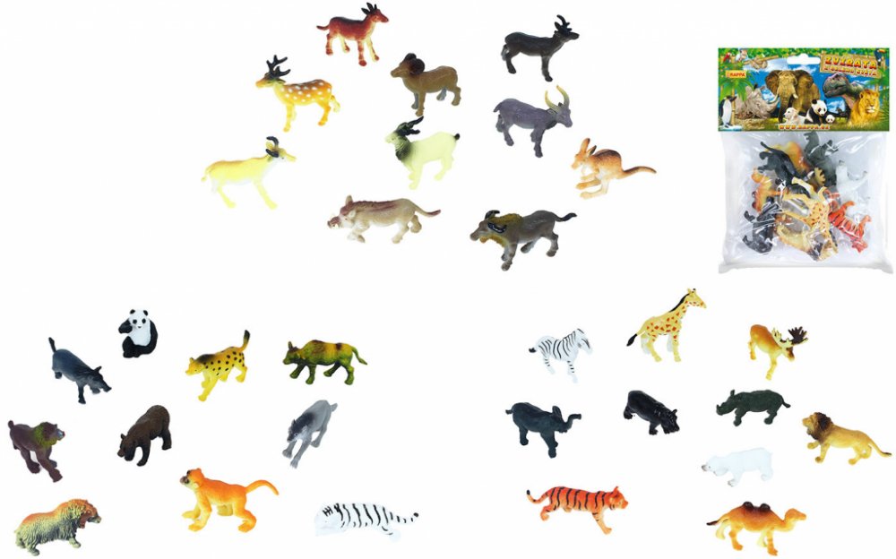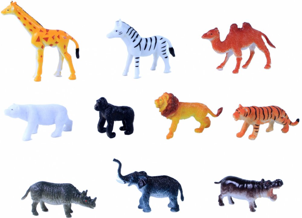 V tomto balení najdeš 10ks divokých zvířat, jako jsou slon, lední medvěd, žirafa, velbloud, zebra a další ... Baleno v sáčku.