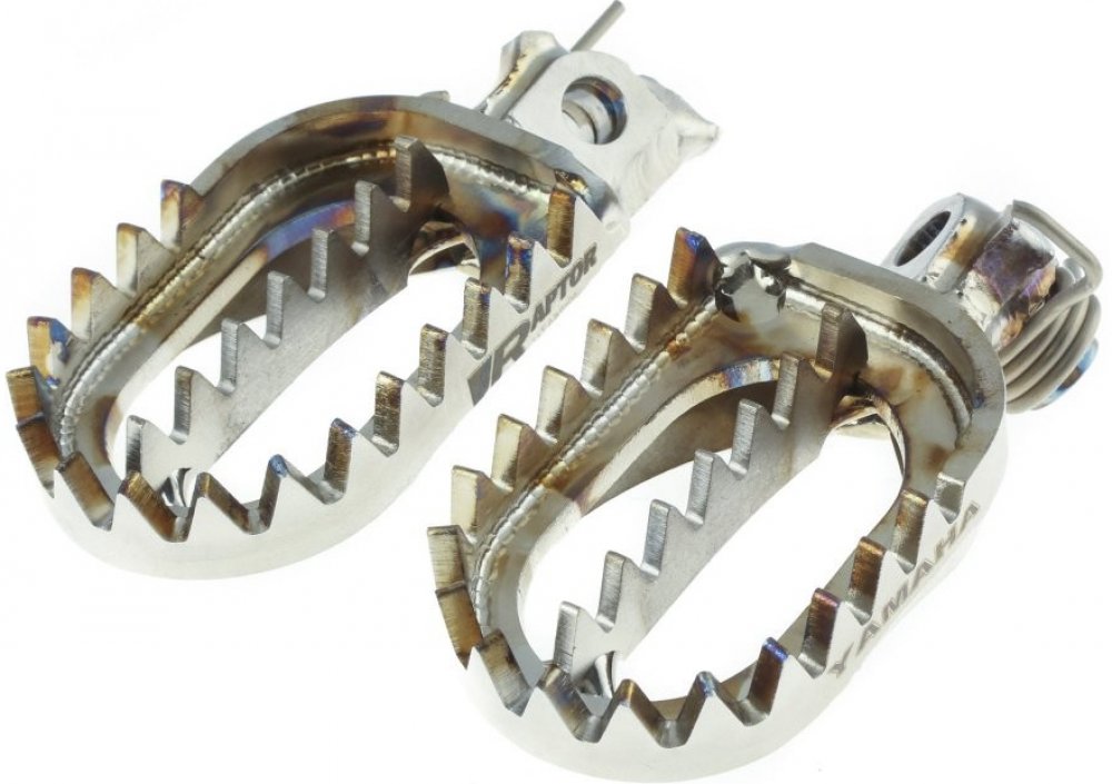 - RAPTOR Titanium Extreme jsou špičkové titanové stupačky určené pro motokros a superkros, v současnosti nejlepší stupčky dostupné pro "veřejnost" používají je top jezdci a teamy v MS a AMA (KTM Factory, KTM USA, ProCircuit Kawasaki, Geico Honda, LS Honda, Rockstar Suzuki, Kawasaki CLS, ...)- precizní ruční práce za použití špičkových technologií a materiálů- jedná se o nejodolnější a nejlehčí stupačky na trhu- mnohem větší životnost s minimálním opotřebením proti duralovým nebo ocelovým stupačkám