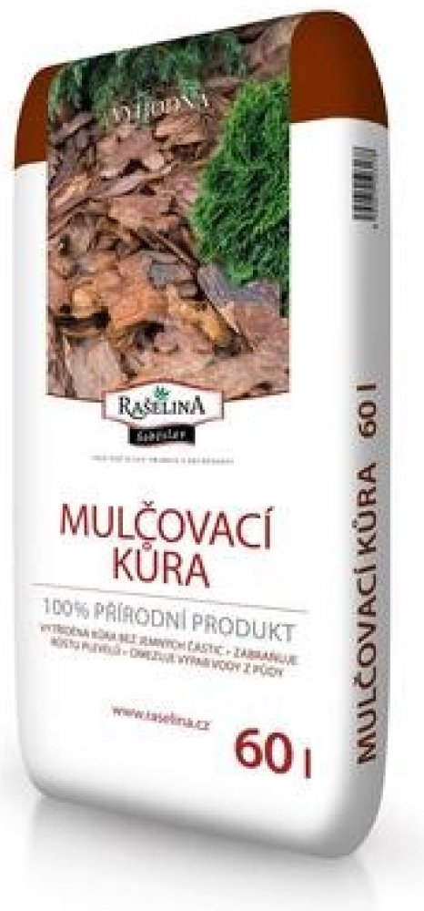 Surovinou pro výrobu této mulčovací kůry je stromová kůra z jehličnatých stromů vybíraná pouze z dodávek dřevní kulatiny neošetřené chemicky proti škůdcům.