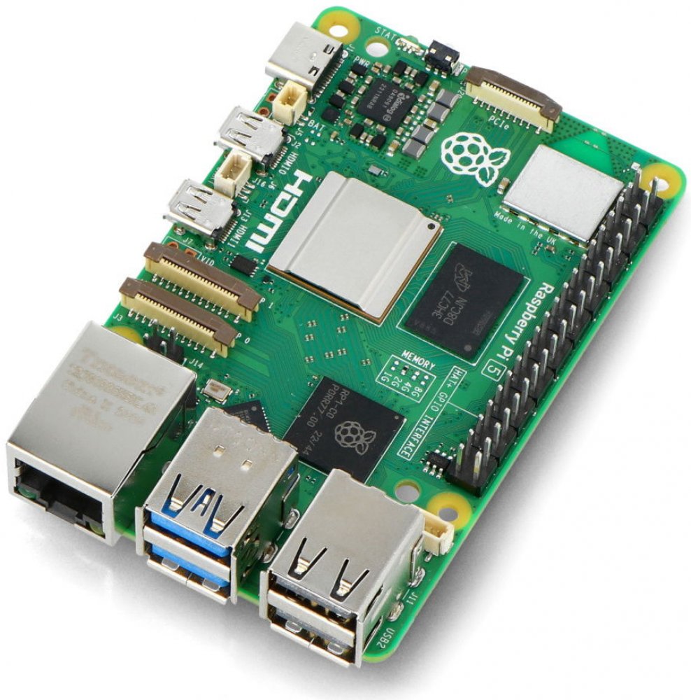 Verze Raspberry Pi 5 vybavená 2 GB RAM . Pátá verze oblíbené raspberry nabízí dva konektory microHDMI, dva porty USB 3.0 a dva porty USB 2.0 , napájecí konektor USB C, dále dva 4řádkové konektory MIPI DSI/CSI pro fotoaparát/displej , port PCI Express 2.0 , a ventilátor, konektor UART a konektor baterie RTC a tlačítko napájení . Deska je dále vybavena dvoupásmovou 2,4 GHz a 5 GHz WiFi, Bluetooth 5 ...