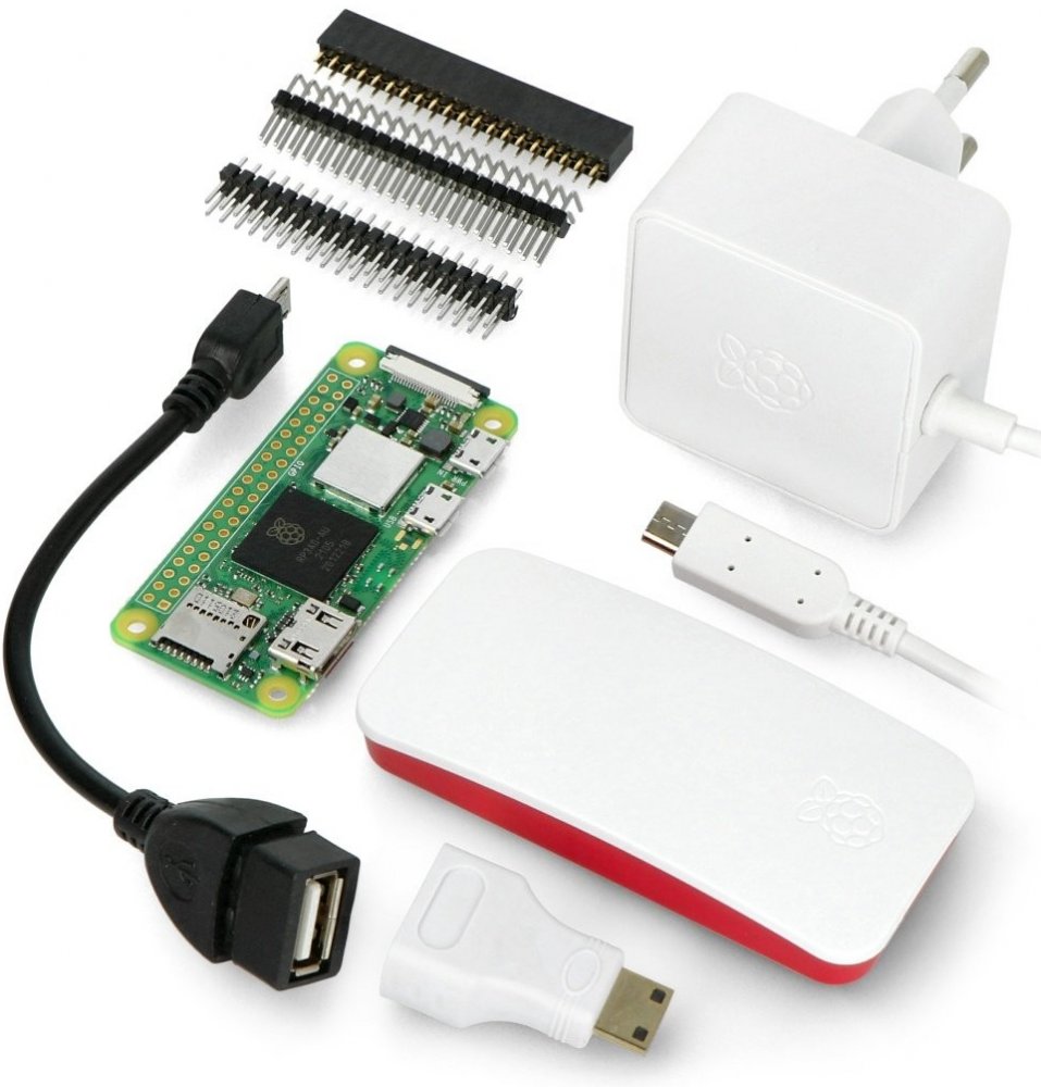 Sada se skládá z minipočítače Raspberry Pi Zero 2 W , dále krytu a vhodného zdroje 5,1 V / 2,5 A. Součástí sady je také miniHDMI-HDMI adaptér, microUSB - USB adaptér a zlatý proužek pro vlastní pájení do konektoru GPIO . Do sady můžete přidat i paměťovou kartu s kapacitou dle vlastního výběru.