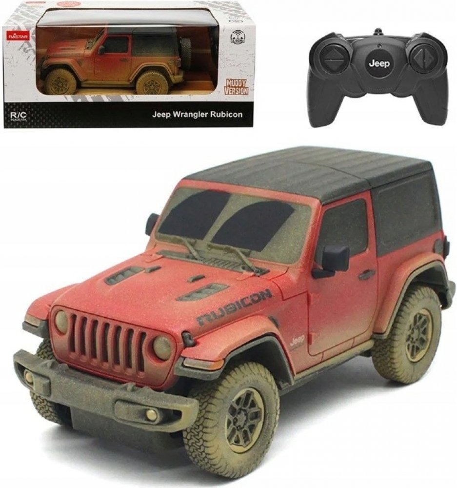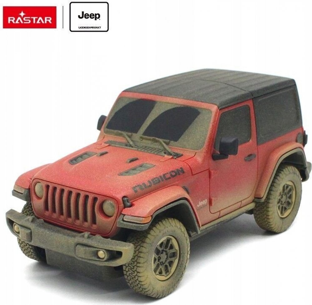 PŘEJETE-LI SI MÍT FUNKČNÍ LICENCOVANÝ MODEL V MĚŘÍTKU 1:24 S NEKOMPROMISNÍM PROVEDENÍM A DETAILNOSTÍ JE ZNAČKA RASTAR PŘESNĚ TÍM PRAVÝM. PŘEDSTAVUJEME RASTAR JEEP WRANGLER RUBICON 1:24. 2 WD * 24 GHz * OFICIÁLNÍ LICENCE * ODPRUŽENÁ PŘ. KOLA * DETAILNÍ ZPRACOVÁNÍ * RÁFKY S GUMOVÝMI PNEU * ZABLÁCENÁ VERZE Jako přední značka hraček získala firma RASTAR díky své vynikající kvalitě výroby a distribuci, licence pro více než 300 vozidel od 28 světově proslulých značek vozidel včetně Ferrari, Lamborghini, Bugatti, Bentley, Porsche, BMW, Audi, Mercedes-Benz atd. Modely mají náhon na zadní nápravu, tedy 2 WD s rychlostí cca 6,5 km/h. Auta nejlépe jezdí na rovné ploše a díky odpružení předních kol jsou vhodné jak do vnitřních, tak venkovních prostor. Ovládání, které pracuje na 24 GHz je jednoduché a intuitivní a poskytuje kompletní manévrovatelnost. Již při prvním pohledu pochopíte, že tyto malé krásné modely nejsou jen na hraní, ale také do poličky na výstavu. Detailní a kvalitní zpracování, LED osvětlení, krásný metalický lak nebo třeba ráfky s gumovými pneumatikami jsou přesně těmi artikly, které dolaďují jedinečnost těchto modelů. Takže kam půjde Váš nový RASTAR licencovaný model, na poličku, nebo na okruh? Technická specifikace: Pohon 2 WD Rychlost cca 6,5 km/h Odpružená přední kola Ráfky s gumovými pneu Ovladač 2,4 GHz Dosah až 25 metrů Napájení 3x AA model, 2xAA ovladač (nejso součástí balení) Měřítko 1:24 Délka 210 mm Šířka 110 mm Výška 88 mm Obsah balení: RC model Jeep Wrangler Rubicon 1:24, červené Ovladač 24 GHz Návod Model je vhodný pro děti od 6 let. Pro zprovoznění budete potřebovat 3x AA do modelu a 2x AA do ovladače. Pro náhradní díly navštivte naší sekci náhradních dílů, nebo zašlete poptávku e-mailem.Pro intenzivní používání v mokrém prostředí doporučujeme elektroniku ošetřit sprejem NANOPROTECH Obsah balení: RC model Jeep Wrangler Rubicon 1:24, červené Ovladač 24 GHz