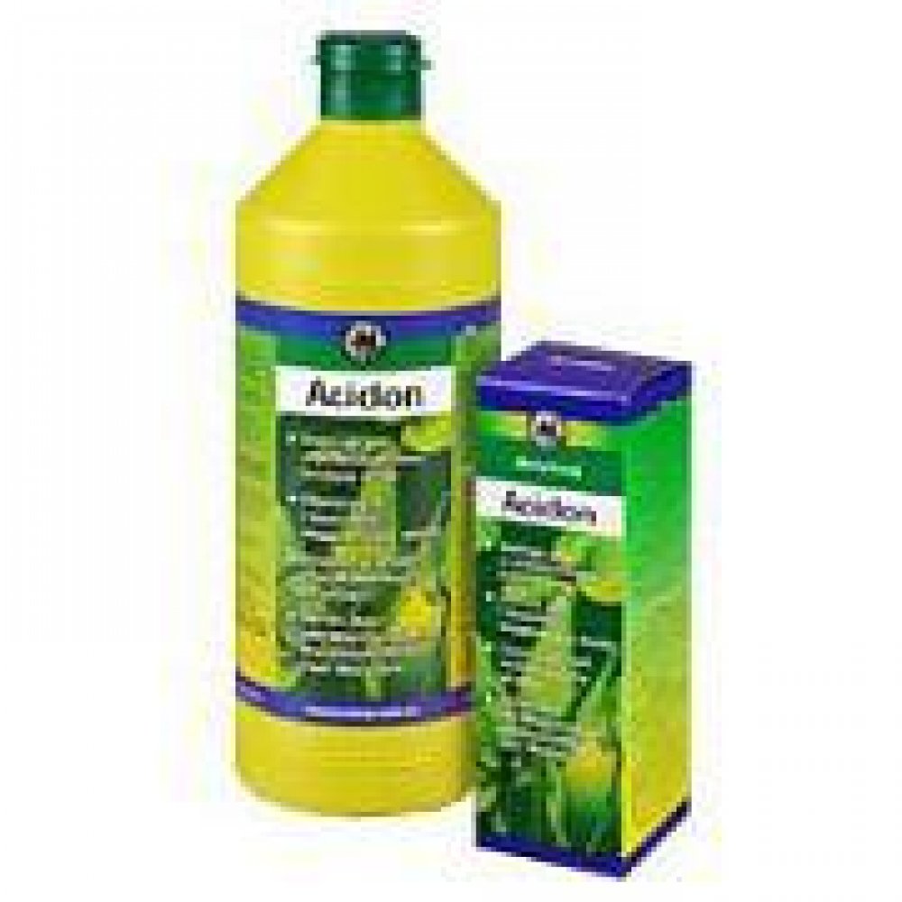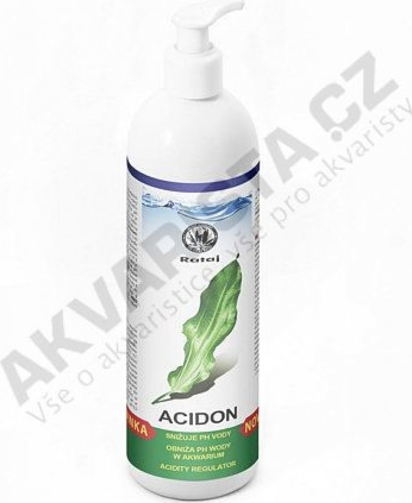 Acidon Snižuje pH a uhličitanovou tvrdost (UT) akvarijní vody. Současně může sloužit jako indikátor, zda písek nebo kameny obsahují nežádoucí vápenec. Ty v tom případě po nakapání Acidonu šumí.