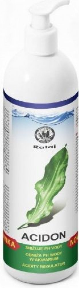 Dávkování: K dosažení žádaného pH dávkujeme 0,5 - 5 ml Acidonu na 10 l vody nejvýše 1 x týdně podle UT (uhličitanové tvrdost - lze zjistit pomocí testu Karbon). Jaké pH se snažíme dosáhnout: 1) UT do 2 dKH - pH 6,3 2) UT 6 dKH - pH 6,7 3) Pokud je UT větší než 6 dKH je účinnost Acidonu omezená. K úpravě pH doporučujeme aplikaci CO2. Pozor: přesné dávkování Acidonu je vhodné stanovit orientační zkouškou v 5 - 10 l akvarijní Vody. K tomu je nezbytný kvalitní indikátor pH. Při předávkování Acidonem může dojít k náhlému poklesu pH a úhynu ryb.