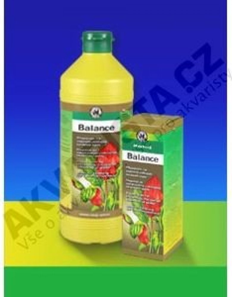 Přípravek Balance vyrovnává intové spektrum vodya zvyšuje celkovou tvrdost /CM/ vody. Pokud je CM vody v akváriu příliš nízká, vznikne chemická nerovnováha. Rostliny i ryby v těchto podmínkách trpí přebytkem dusíkatých látek. Přípravek Balance pomáhá tento stav vyrovnat a pomáhá vytvářet ideální podmínky pro zdravé ryby a rostliny.