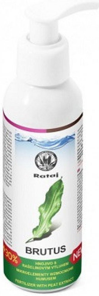 Univerzální hnojivo pro akvarijní rostliny s rašelinovým výluhem. Dva v jednom - optimální výživa + ochrana. Přípravek Brutus kombinuje dva přípravky - Bioflor (univerzální hnojivo) a Chelatin (rašelinový výluh) Rostlina získá díky hnojivu Brutus optimální živiny pro krásně vybarvené, pevné listy a rychlý růst. Hnojivo navíc obsahuje huminové látky a třísloviny, které mají v akváriu funkci: zásobovací, regulační, ochranou, pohlcují škodlivé látky z vody a funkci pufrační. Řašelinový výluh obsahuje huminové kyseliny a třísloviny pomáhající vytvářet podobné prostředí, které se vyskytuje v přírodě. Voda dostane jemný nádech do hněda, který se po určité době ztratí. Tlumí stres u ryb a vytváří ochrannou vrstvu na pokožce ryb - odolnost proti parazitům, prevence onemocnění. Huminové látky a třísloviny vytváří navíc ideální prostředí pro vývoj jiker a zárodků. Rostlina získá potřebné živiny a také pevnější a odolnější epidermis. Zdravá rostlina produkuje kořenové výměšky a algicidy, které podporují činnost bakterií a omezují růst řas. Proto se řasy na dobře rostoucích rostlinách nevyskytují nebo maximálně v omezené míře na méně aktivních starších částech rostlin. Správná péče o rostliny, která spočívá v optimalizaci množství CO2, živin a v použití vhodného světelného spektra, je základní prevencí proti řasám! Zdravá rostlina vytváří vhodné biologické podmínky pro ryby. Ryby jsou pak aktivní, krásně vybarvené a zdravé. Složení: Hnojivo obsahuje K, Mg a mikroprvky Fe, Mn, Cu, Zn, Mo a B. Dále jsou obsaženy huminové kyseliny (rašelinový výluh). Dávkování: Dávkujeme podle obsahu nádrže 10 ml Brutusu na 20 l akvarijní vody. Před hnojením doporučujeme vyměnit asi 1/5 vody v akváriu. Pro optimální působení hnojiva je dobré, aby se pH akvarijní vody pohybovalo v rozmezí 6,3-6,8 podle UT (uhličitanová tvrdost). Tohoto pH dosáhneme nejlépe aplikací CO2 nebo Acidonem.
