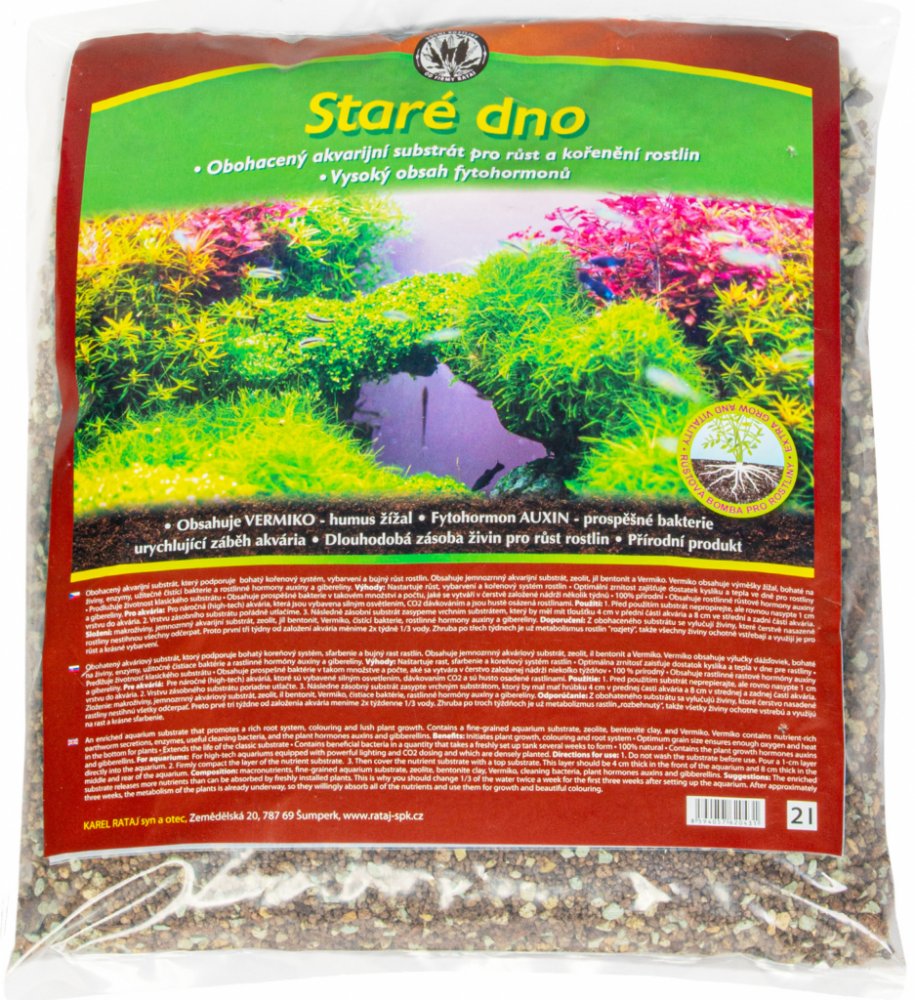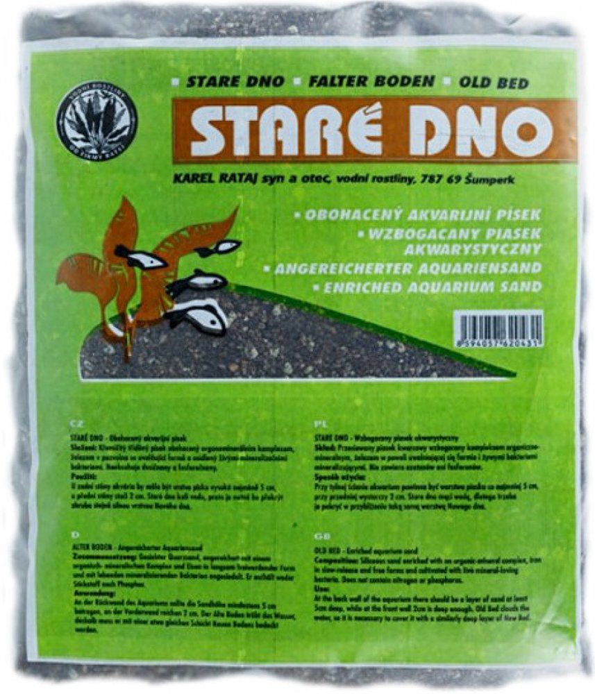 Staré dno je křemičitý tříděný písek obohacený organominerálním komplexem, železem a prospěšnými bakteriemi, které se podílejí na filtraci vody v akváriu.