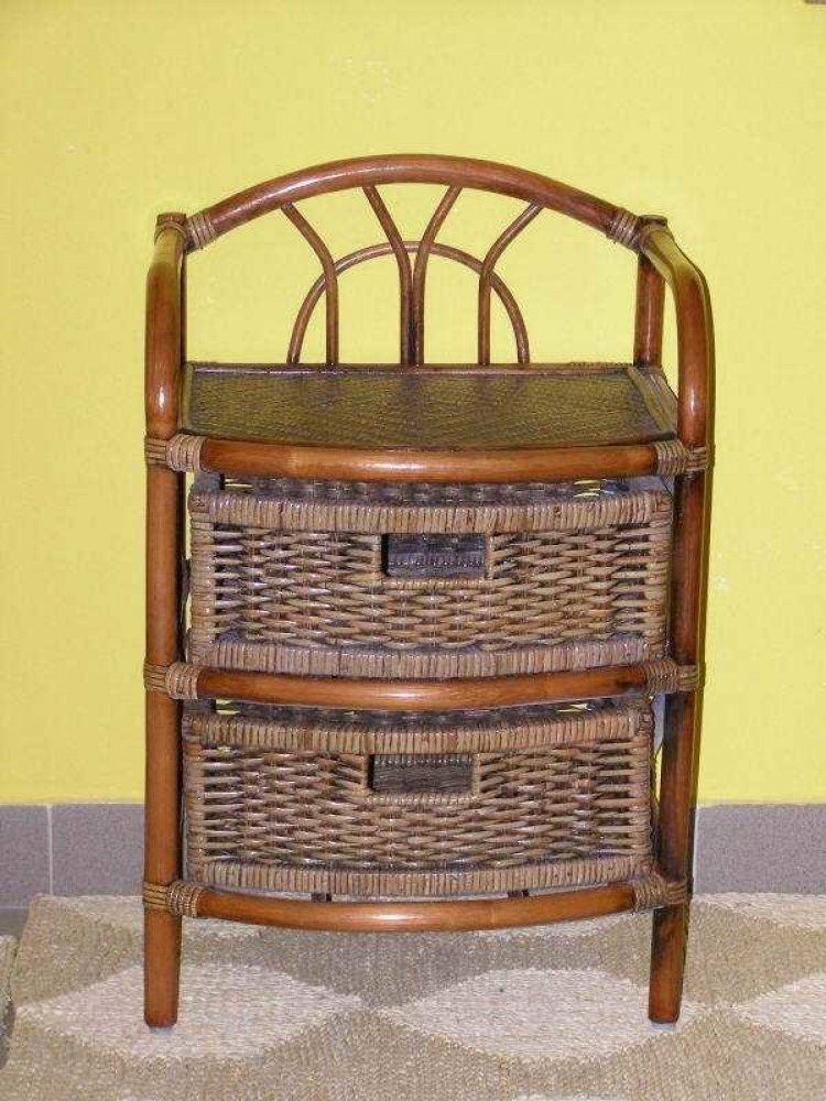 Ratanový prádelník pro uložení vašeho prádla v koupelně, či jiné místnosti vašeho domova. Úložný prostor dvou ratanových zásuvek doplňuje i prostor na vrchní části ratanového prádelníku. Ratanový prádelník vám nabízíme v odstínu tmavý med. Ratanový prádelník je často využíván i jako ratanový noční stolek. Neváhejte s objednávkou - poslední kusy skladem.