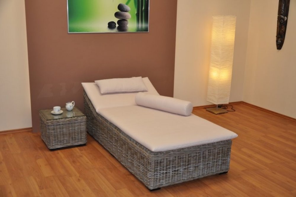 Ratanové lehátko Karola s odkládacím stolkem, polstr bílý