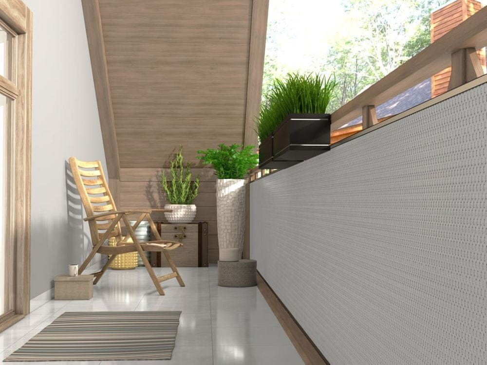 Zástěna na balkony vyrobená ze splétaných proužků s různým barevným designem. Vytváří estetický dojem jaký znáte z přírodního ratanového nábytku. Jednotlivé pásky jsou spolu spojeny, takže nehrozí rozpletení. Odolává vlhkostí, UV záření, mrazu i nečistotám.