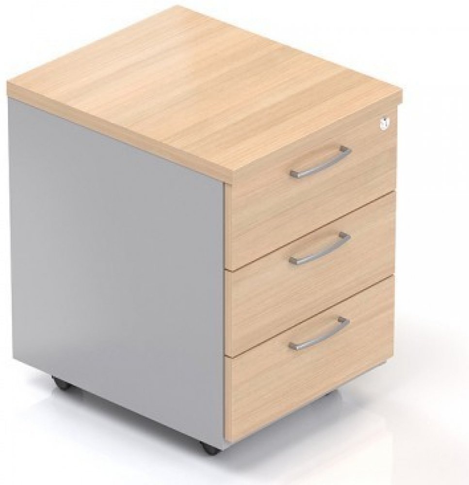 Kontejner Visio LUX o rozměrech 43 x 52 cm disponuje třemi zásuvkami s centrálním zamykáním. Vrchní deska o síle 28 mm je vyrobena z laminované dřevotřísky. Nosnost každé zásuvky je 20 kg.