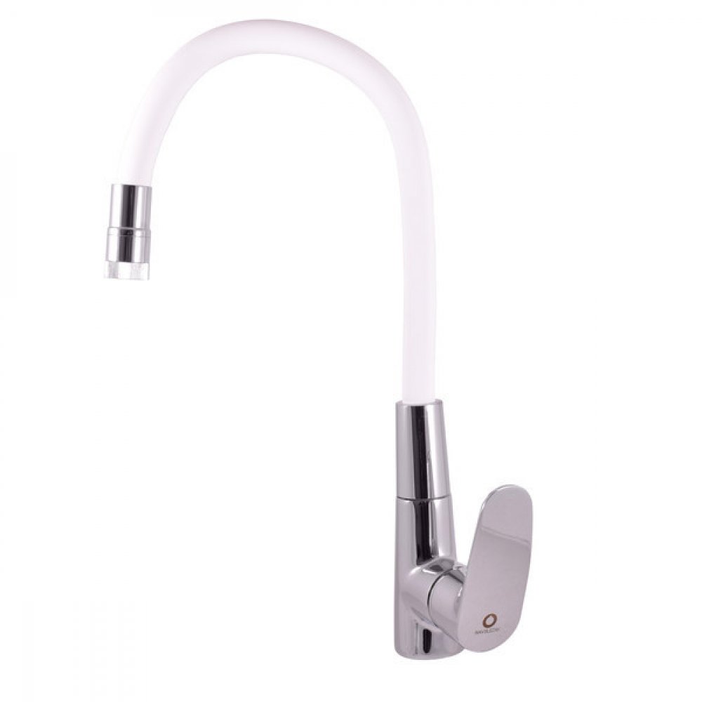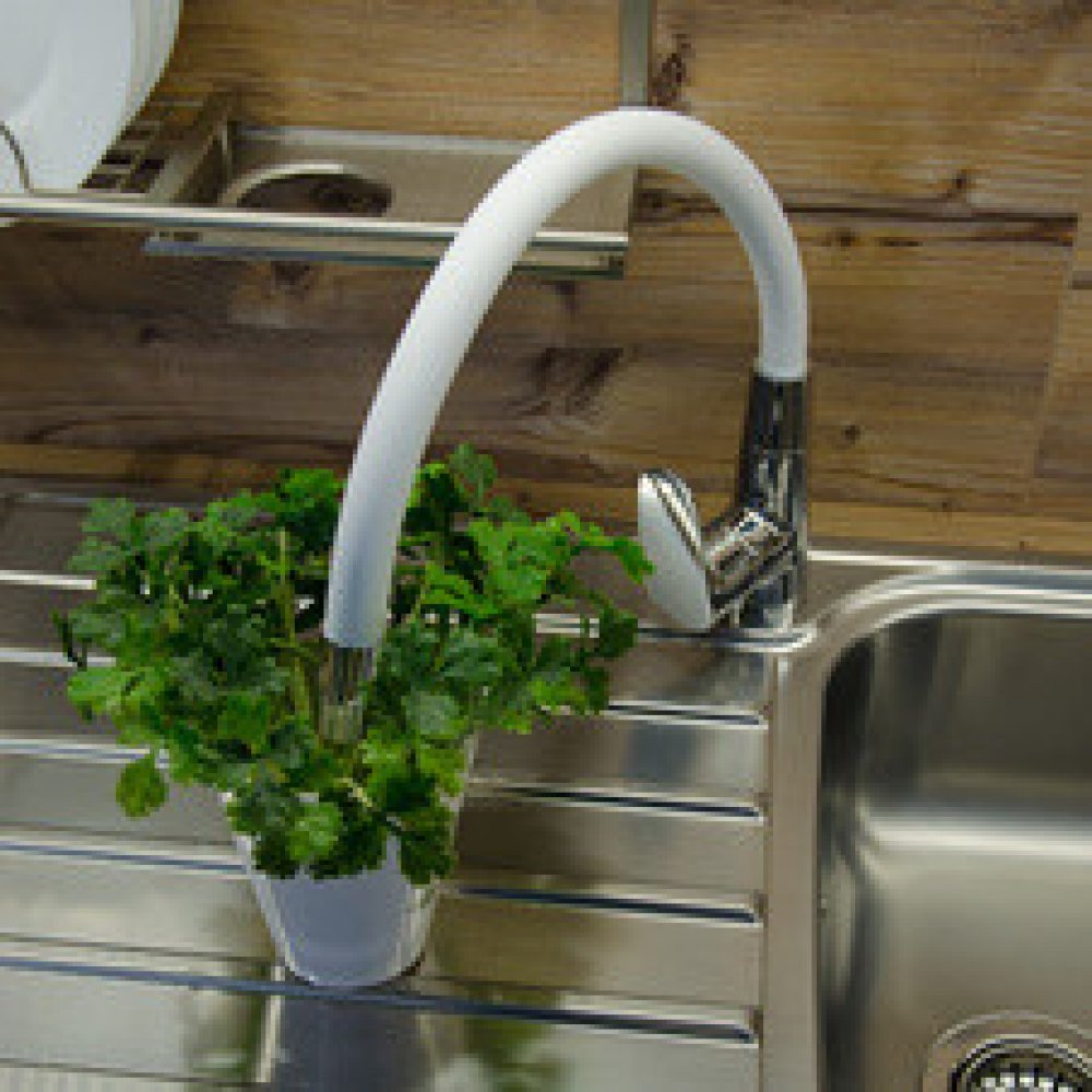 Vodovodní baterie dřezová stojánková s flexibilním otočným ramínkem s dvoupolohovým perlátorem (funkce proud/sprcha).